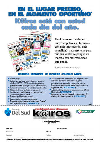 Complete el cupón y envíelo por el sistema de reparto de Droguería del Sud al Departamento Esencia de cada sucursal.